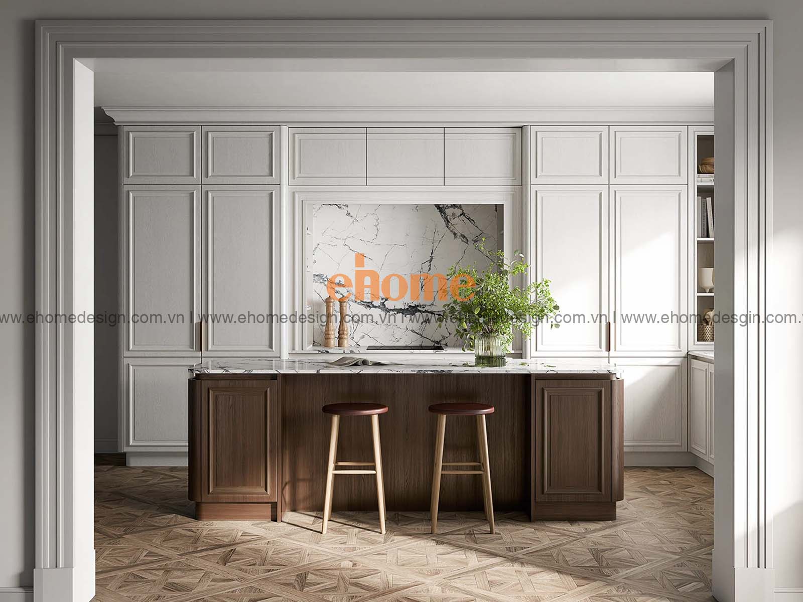 - Phong cách tân cổ điển: Kết hợp phụ kiện mạ vàng hoặc inox mờ sang trọng.