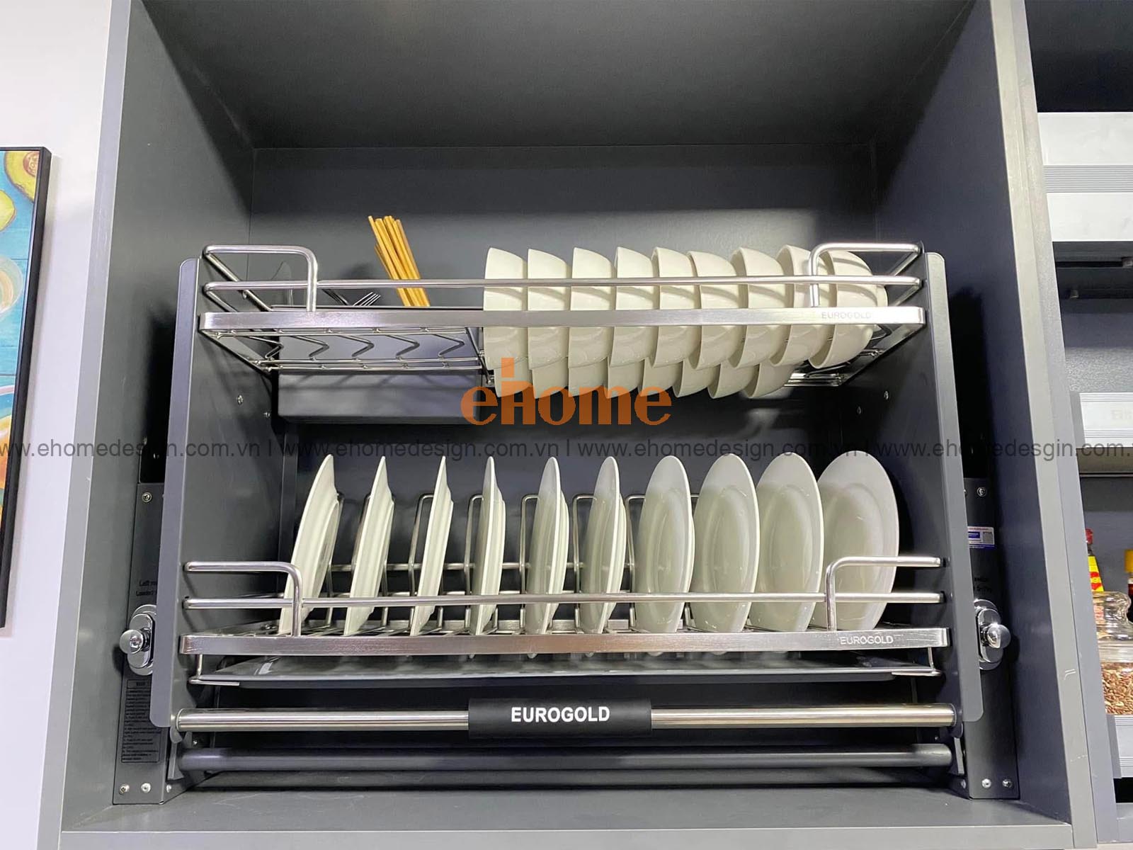 THÔNG TIN TỔNG QUAN Chức năng: Giá bát nâng hạ Nhãn hàng: Eurogold Vị trí lắp đặt: Tủ bếp trên Chất liệu: Inox 304 cao cấp Kích thước lắp đặt: 600 – 900 (mm) Khoảng giá: 3.350 – 6.750.000 VNĐ