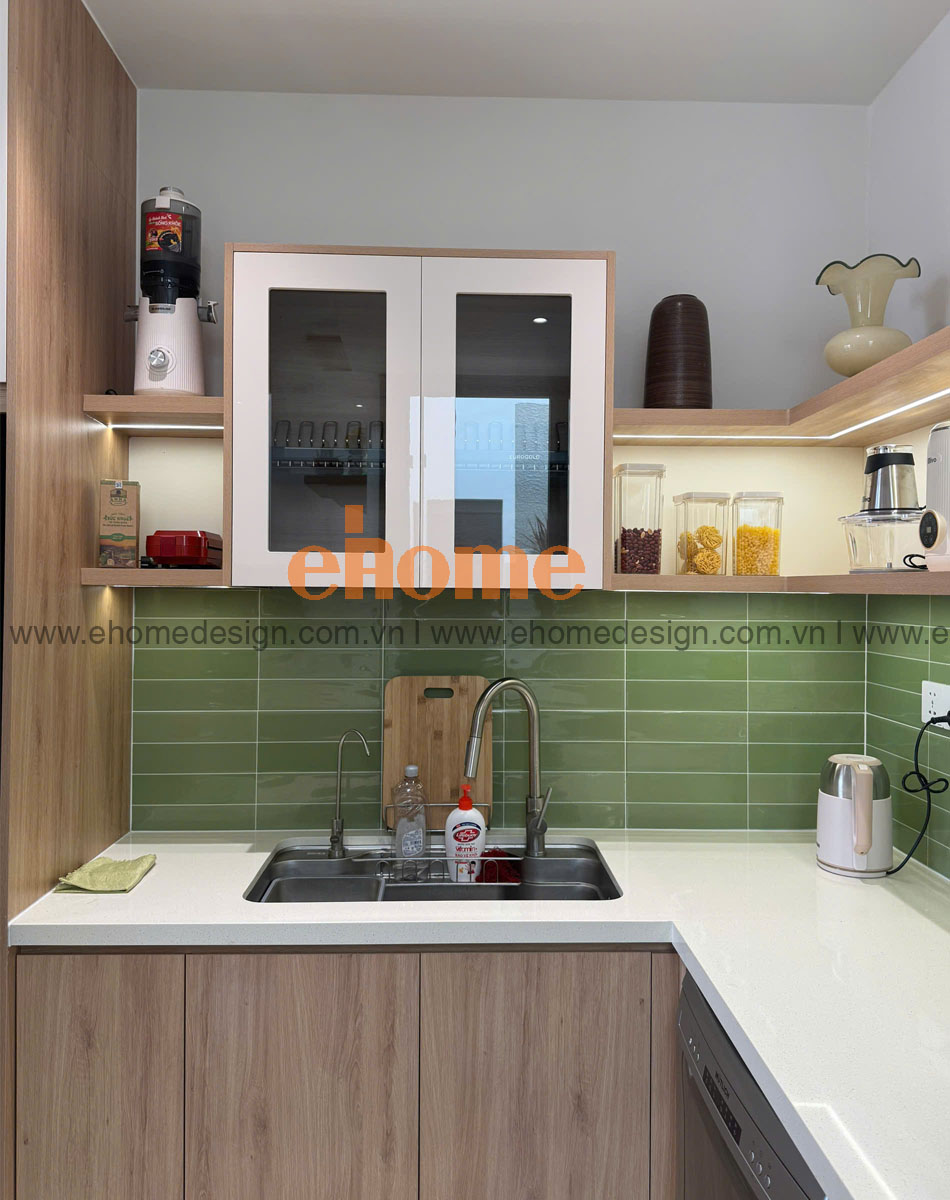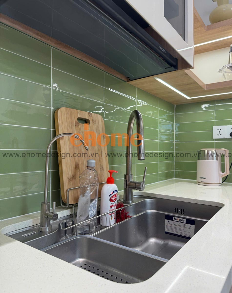 Thiết bị bếp: chậu rửa, máy hút mùi. Phụ kiện bếp: kệ úp chén bát